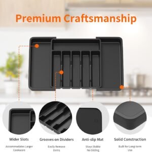 The Lifewit utensil organizer can be expanded from 7 compartments to 9 compartments, allowing for storage of more utensils, cookware, and kitchen tools.